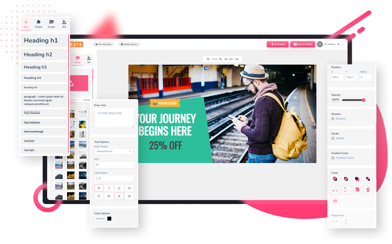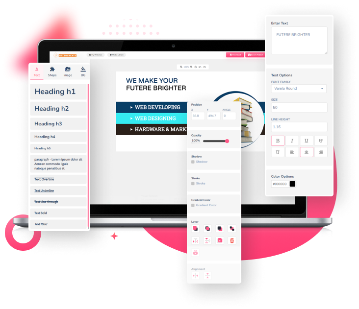 Utter Create Editor Offers A Variety Of Typography Options To Customize Headings, Paragraphs, And Other Elements With Font Style, Color, Size, And Line Height. You Can Also Add Gradients, Strokes, And Shadows To Make Your Text Stand Out And Captivate Readers. With Typography, You Can Create Engaging And Impactful Content.