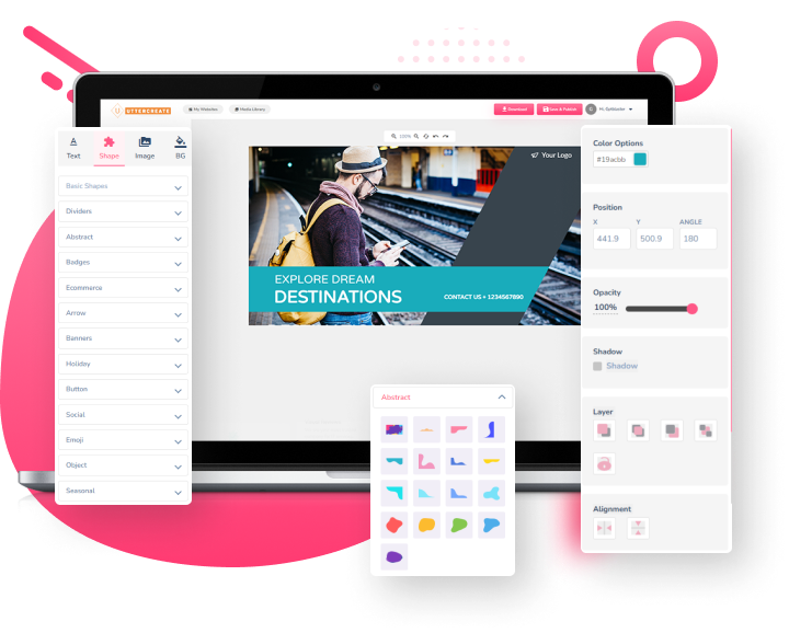 Utter Create Shape Library Has A Variety Of Assets Like Basic Shapes, Dividers, Badges, And More To Enhance Your Designs. Customize Each Shape Easily By Adjusting Size, Color, Opacity, And Other Settings. You Can Even Add Your Own Custom Shapes To The Library For More Options. Create Stunning Designs That Stand Out With Utter Create Today.